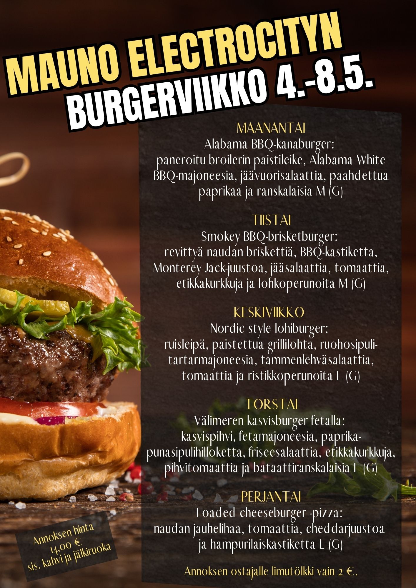 Burgerviikko Mauno Electrocityssä 4.-8.5.